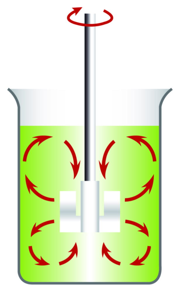 The anchor-shape rotor creates a tangential flow and high shear forces between the vessel wall and stirring blades. This stirrer is especially suitable for medium to high viscosity fluids. Recommended for low speed operations.