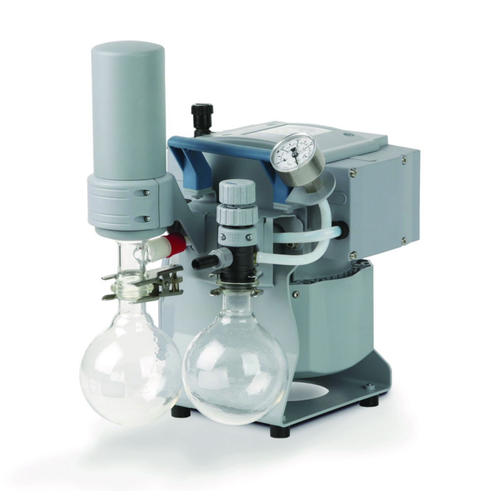 The combination of speed controlled VARIO® chemistry diaphragm pumps and the new VACUU·SELECT vacuum controller makes the VARIO® select chemistry pumps the ideal solution for chemical processes that require precise vacuum, such as rotary evaporation, vacuum drying or vacuum concentration.High chemical resistance and therefore ideally suited for pumping aggressive gases and vapoursShort process times and smooth running due to optimal setting of the pressure via the VACUU·SELECT controllerThe VARIO® technology controls the vacuum precisely and efficiently via motor speedPower consumption, maintenance and noise are exceptionally lowThe outlet catchpot and solvent condenser combine to prevent solvent vapor emissions into the lab, allowing for nearly full recovery of solventsCountry-specific power cord versions available on request.The combination of speed controlled VARIO® chemistry diaphragm pumps and the new VACUU·SELECT vacuum controller makes the VARIO® select chemistry pumps the ideal solution for chemical processes that require precise vacuum, such as rotary evaporation, vacuum drying or vacuum concentration.High chemical resistance and therefore ideally suited for pumping aggressive gases and vapoursShort process times and smooth running due to optimal setting of the pressure via the VACUU·SELECT controllerThe VARIO® technology controls the vacuum precisely and efficiently via motor speedPower consumption, maintenance and noise are exceptionally lowThe outlet catchpot and solvent condenser combine to prevent solvent vapor emissions into the lab, allowing for nearly full recovery of solventsCountry-specific power cord versions available on request.