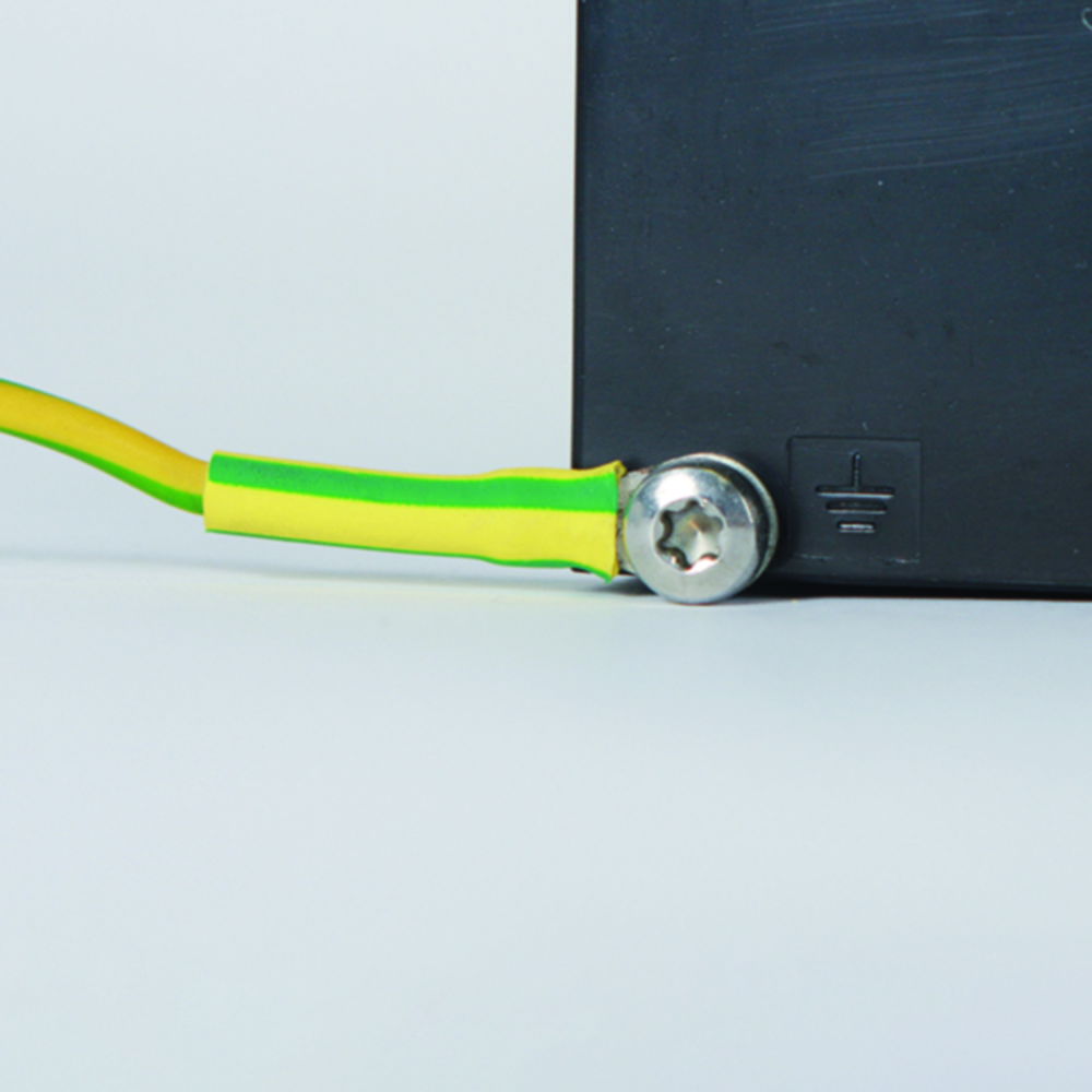 Made of conductive black polycarbonate which is capable to discharge electrostatic charging by means of a grounding cable over a connection on the back side. Black panels reduce light incidence and protect against ultraviolet radiation. With connection for grounding cable, cable not included in delivery.