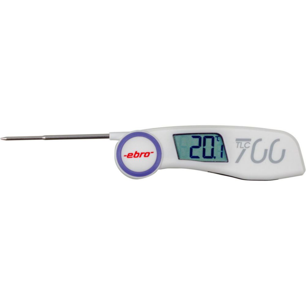 The practical folding thermometer TLC 700 is suitable for measuring the core temperature during transport, storage and receiving of goods. Thanks to the foldable penetration probe the waterproof thermometer (IP 65) can be stored safely. The device is primarly characterized by its small size and the large display and comes with a calibration certificate.