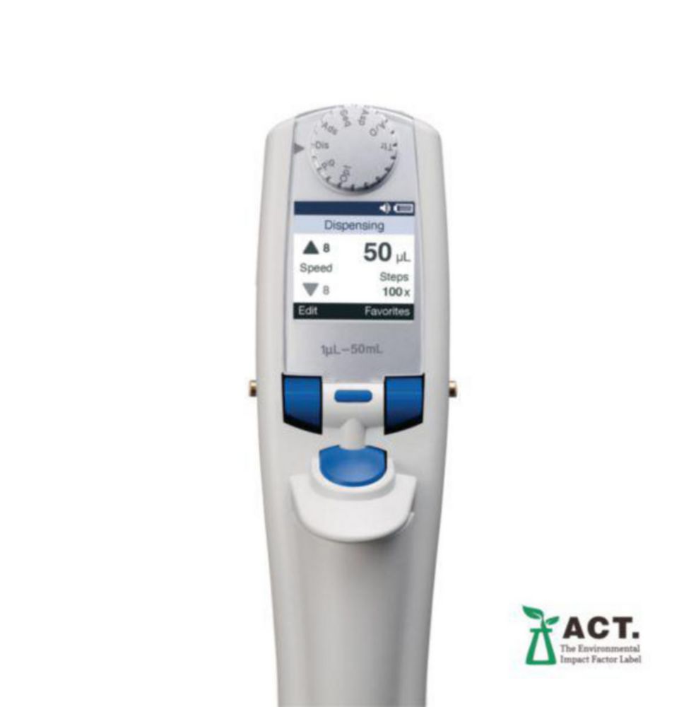 The Multipette® E3x has a large colour display and user-friendly software as well as a clear arrangement of all adjustable parameters in 9 languages.It has an aspirate and dispensing feature which allows uptake and volume calculation of an unknown volume with immediate dispense in desired partial volumes. In addition to this, up to 225 different parameter settings can be stored saving programming time for routine applications. A sleep mode saves energy when the Multipette® E3x is not used.