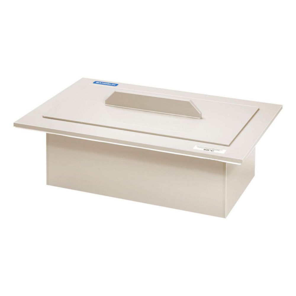 Unperforated plastic, with cover. For cleaning with aggressive liquids.