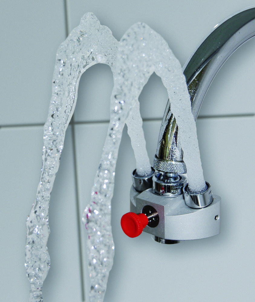 Ideal for the lab, filling stations or all work places where aggressive substances are used. "Eyes Fresh" can be attached to any standard cold water tap. For normal use of the tap, just press the button and the function changes back from the eye wash (returns automatically to eyewash-function when the tap is closed). Can be fitted onto taps with M22x1, 1/2" or 3/8" outer thread.