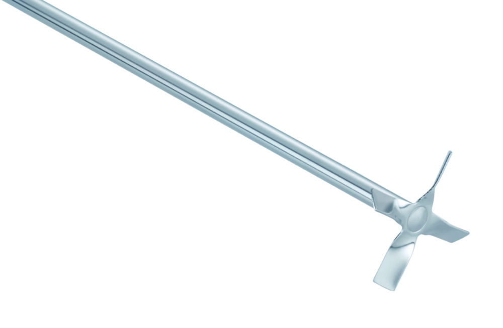 The 4-blade propeller stirrers provide axial flow and create increasing shear forces at higher stirring speeds. Recommended for medium to high speed operations.