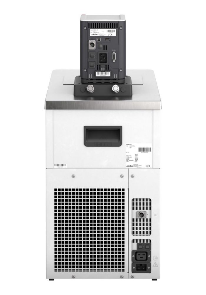 Refrigerated circulators with enhanced, flexible pump performance and a working temperature range up to 200 °C. Temperature control is possible either in the internal bath or in a connected external application.Bright, white, easy-to-read displayEasy pump switching between internal and external circulationExternal pump connections (M16x1)Infinitely adjustable pressure pumpUSB connectionRS232 interfaceTimer adjustable up to 999 minutesSpace-saving cooling coil design yields more usable space in the bath tankStainless steel bath tank including bath lid and drain tapRemovable ventilation gridRefrigeration unit without lateral ventilation openingsUnique early warning system for low liquid levelClass III (FL) acc. to DIN 12876-1Scope of supply: Refrigerated circulator, mains power cable, connection box, bath cover, connecting cable, refrigerator, hose olives 8 and 12 mmRefrigerated circulators with enhanced, flexible pump performance and a working temperature range up to 200 °C. Temperature control is possible either in the internal bath or in a connected external application.Bright, white, easy-to-read displayEasy pump switching between internal and external circulationExternal pump connections (M16x1)Infinitely adjustable pressure pumpUSB connectionRS232 interfaceTimer adjustable up to 999 minutesSpace-saving cooling coil design yields more usable space in the bath tankStainless steel bath tank including bath lid and drain tapRemovable ventilation gridRefrigeration unit without lateral ventilation openingsUnique early warning system for low liquid levelClass III (FL) acc. to DIN 12876-1Scope of supply: Refrigerated circulator, mains power cable, connection box, bath cover, connecting cable, refrigerator, hose olives 8 and 12 mm