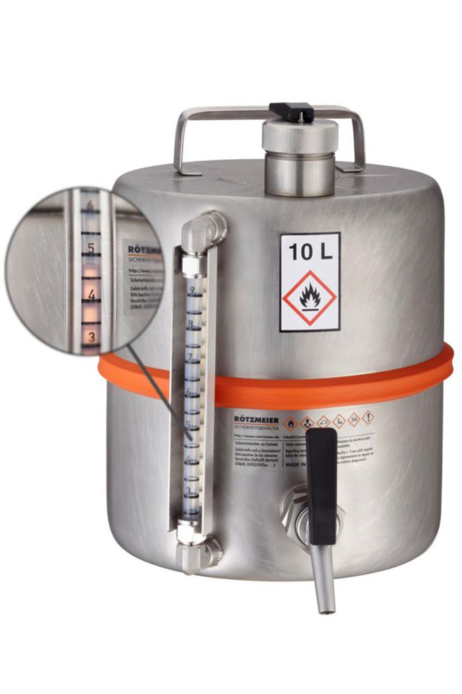 For safe storage, use, decanting and in-plant transports of flammable liquids. Explosion-proof by flame traps and pressure control valves in screw caps and metering devices (self-closing). From high quality and chemically resistant stainless steel 316/304, electro-polished, gaskets from PTFE, ergonomic handles.