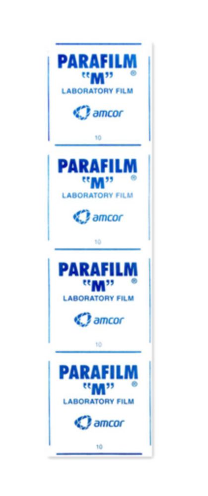 Parafilm® is a flexible, semi-transparent, thermoplastic film designed for reliable sealing of irregular surfaces such as test tubes, beakers, petri dishes and flasks. Made from a blend of waxes and polyolefins, Parafilm® stretches up to 200 % of its original size. Pre-cut Parafilm strips are sterilised using a Vapor Hydrogen Peroxide process.
