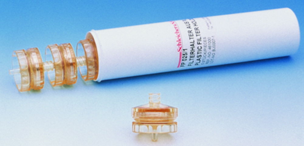 In polysulphone for use with syringes for analytical and preparative use. Filtration-media must be selected separately.