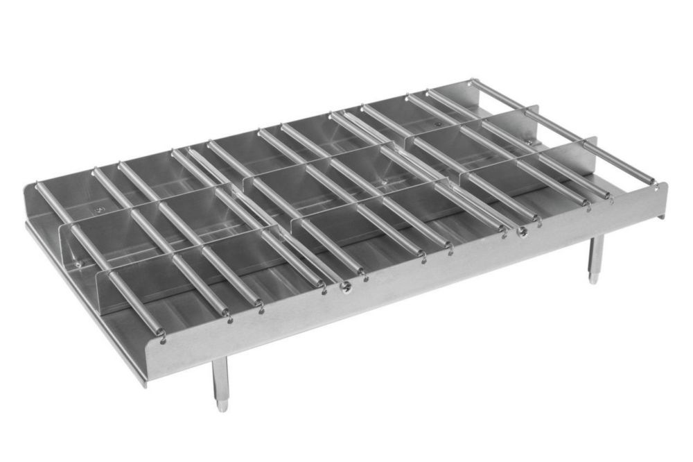 Trays made of stainless steel for secure positioning of Erlenmeyer flasks in the shaking water bath.