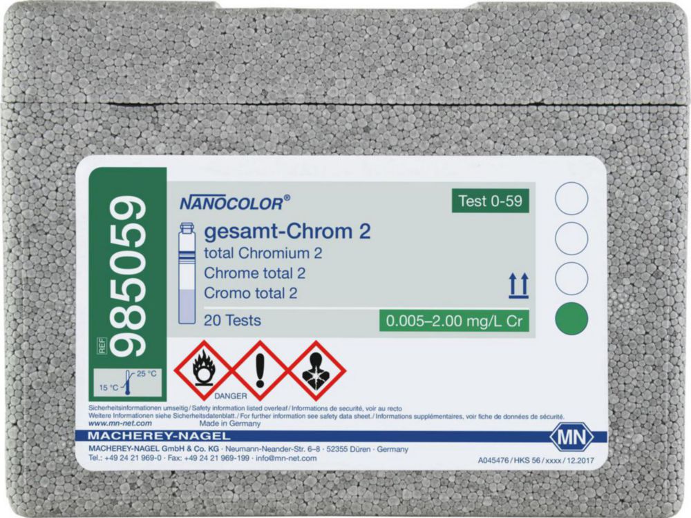 | Measuring range: | 0,05 - 2,00 mg/l Cr0,005 - 0,500 mg/l Cr |