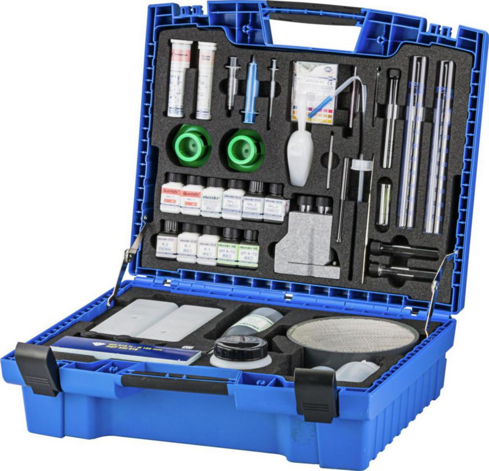 The VISOCOLOR® reagent case for soil analysis is the perfect companion for economical, fast and convenient soil analysis, both in the field or in your laboratory, including the following tests: