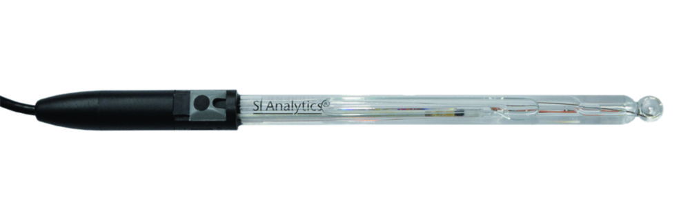 With glass shaft, Silamid® reference system with silver ion barrier and double-electrolyte, electrolyte KCl 3 mol/l. SCPpHT-A170MF-3M-DIN-N additionally with ID function.